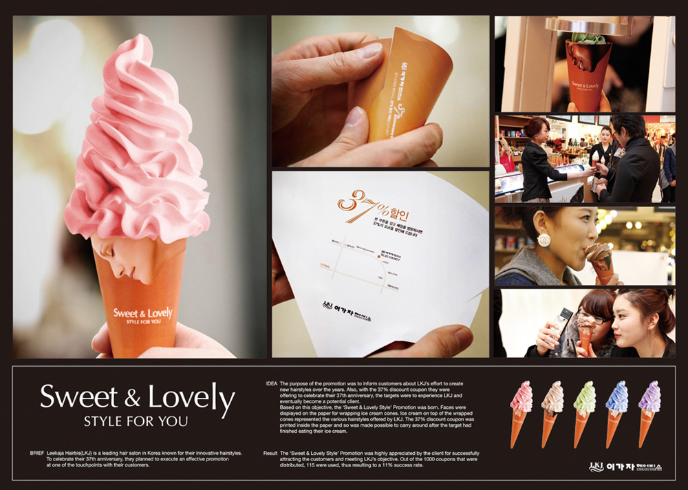 Сеульские креативщики подошли к созданию прямой рекламы с необычной стороны. Чтобы привлечь внимание потребителей к парикмахерской Leekaja Hairbis, они придумали особое мороженое, на бумажном стаканчике которого изображена девушка таким образом, что само мороженое выглядит как ее прическа.